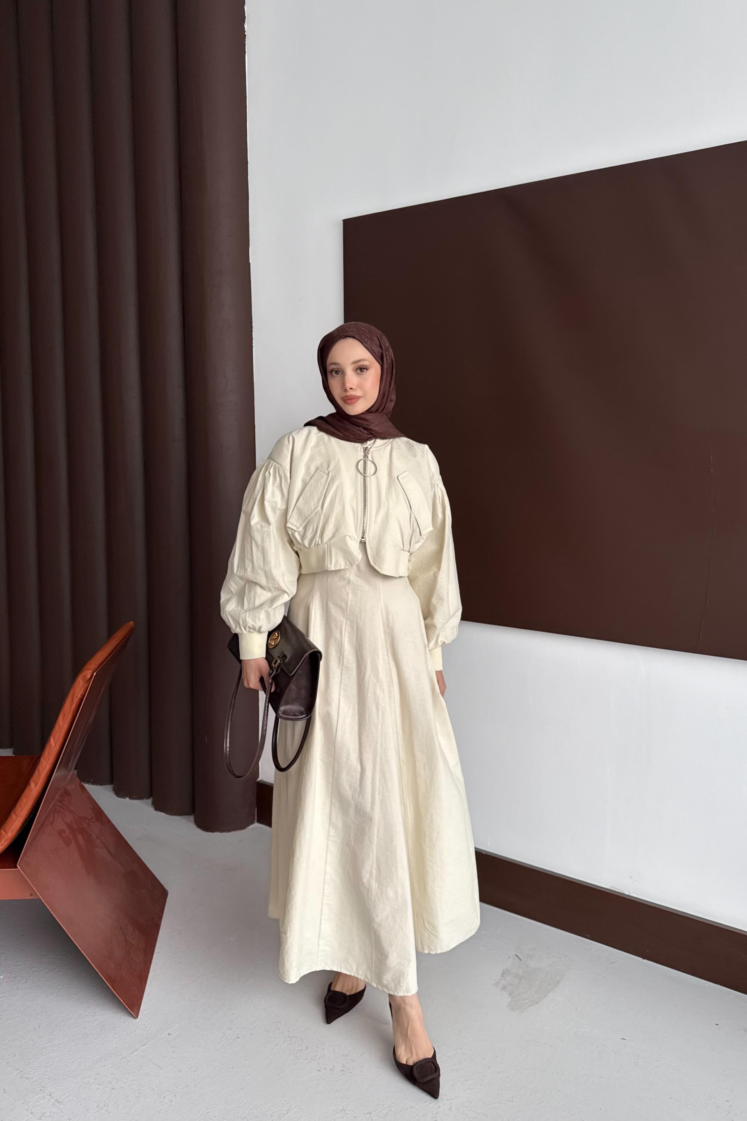Bomber Ceketli Elbise - Bej