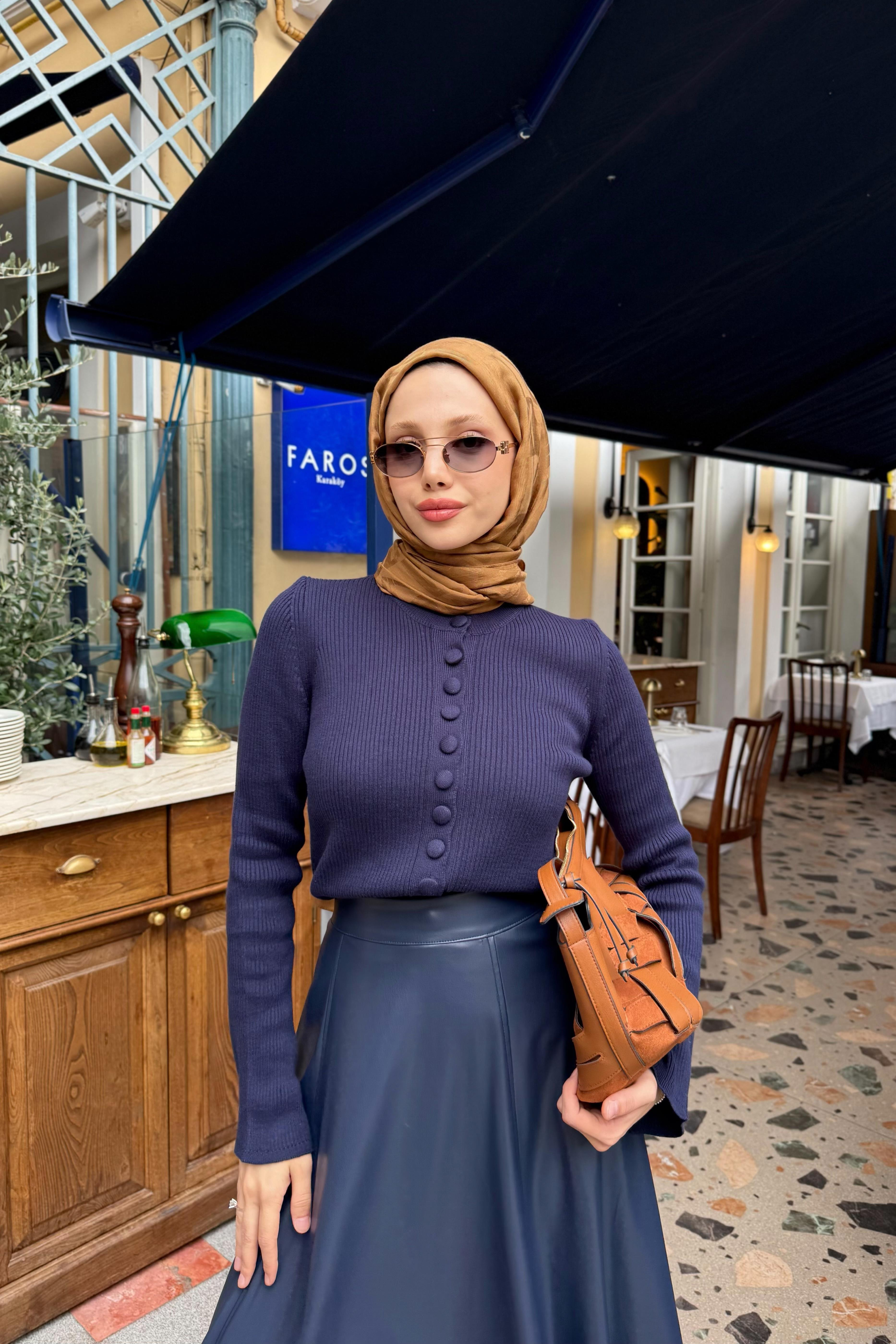 Buttoned Knit Cardigan - Navy Blue (51257)