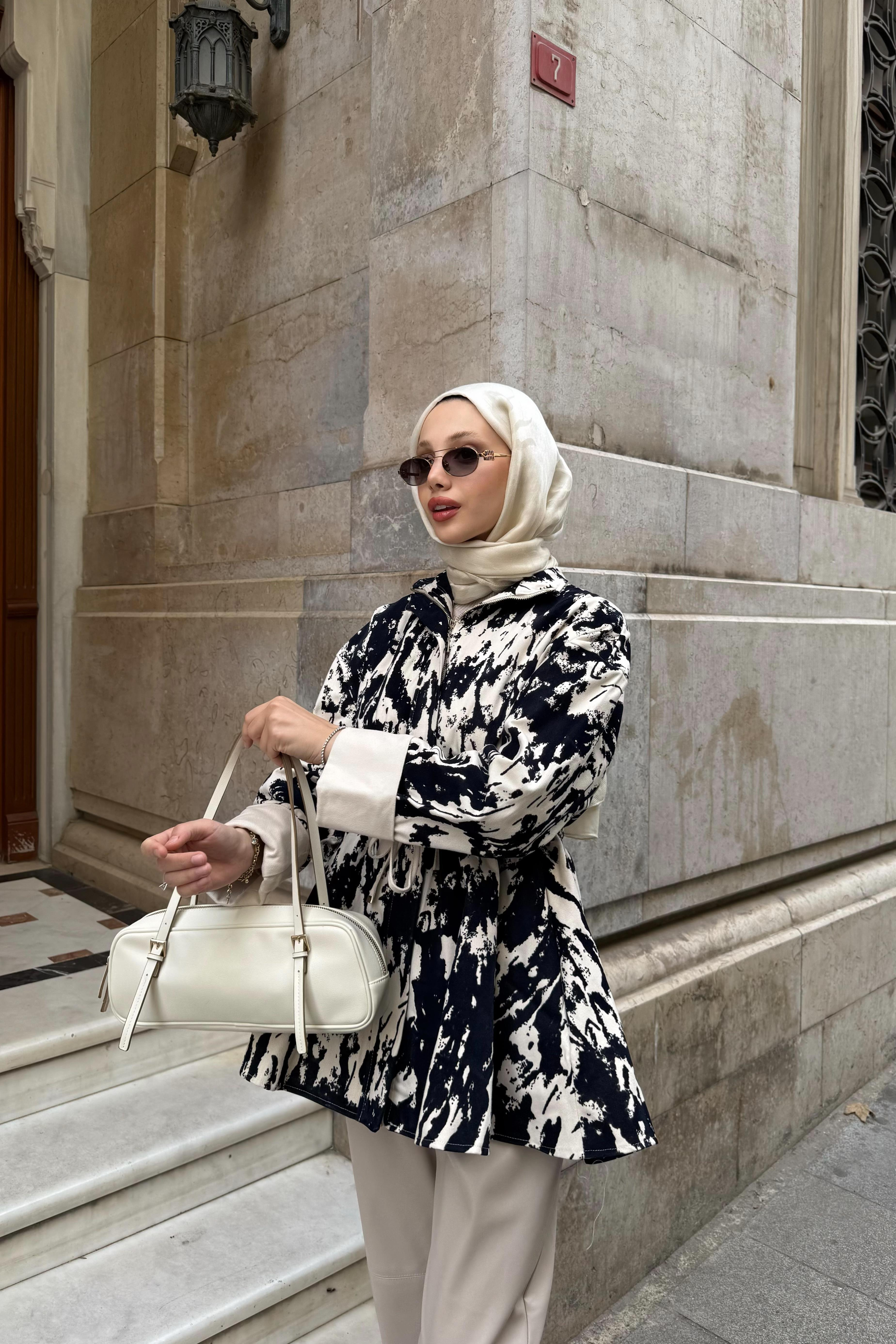 Desenli Bel Büzgülü Ceket - Lacivert (A-8011)