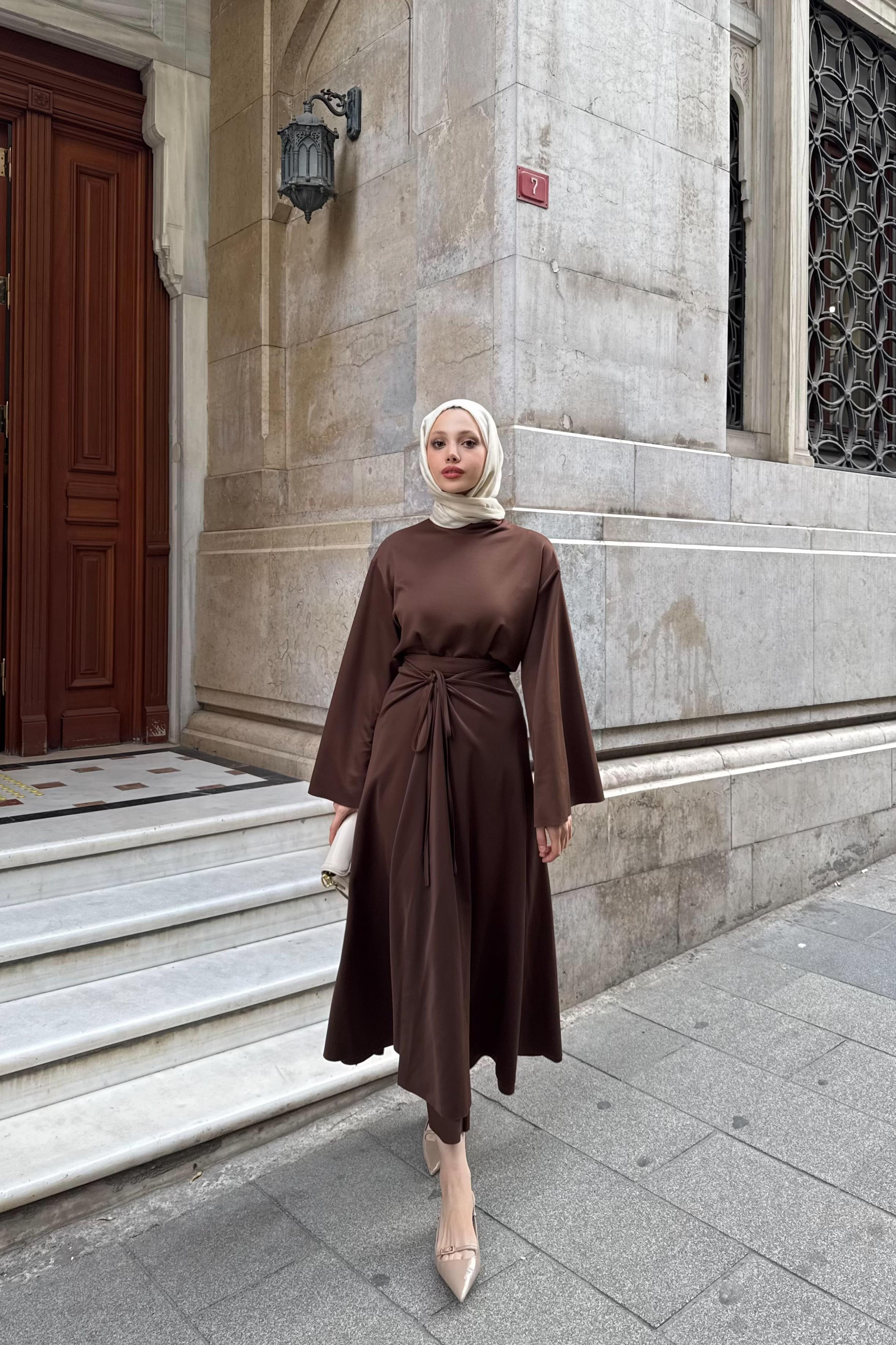 Etek :Beli kemerli , arkadan fermuarlı , kloş kesime sahip , etek üstüne bağlanabilir pelerin mevcuttur .