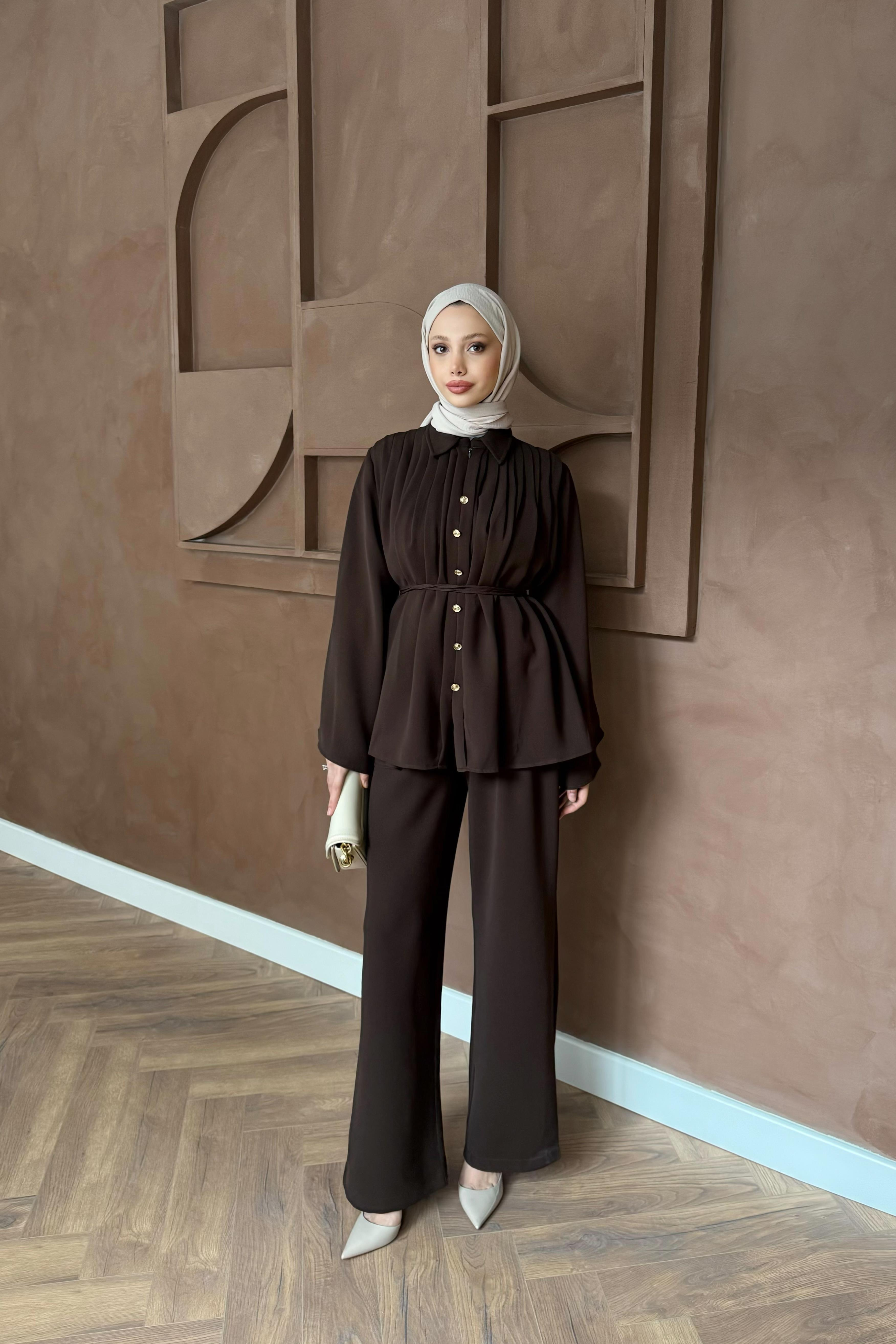 Pantolon : Beli lastikli, düz bol kesime sahiptir.