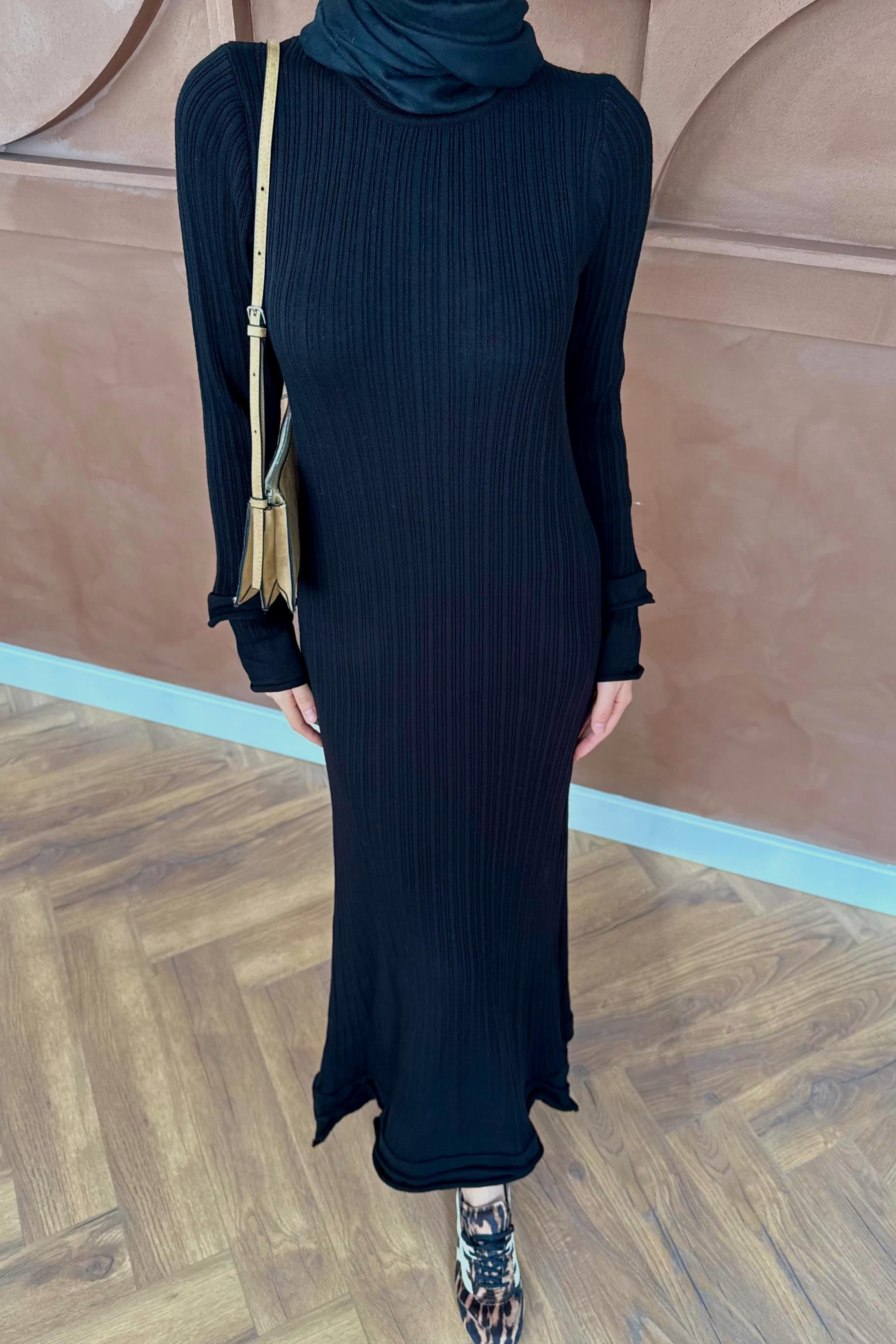 Ruffle Knit Dress - Black (QTRM-075)